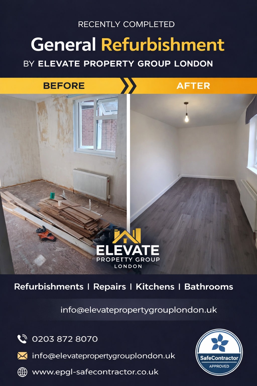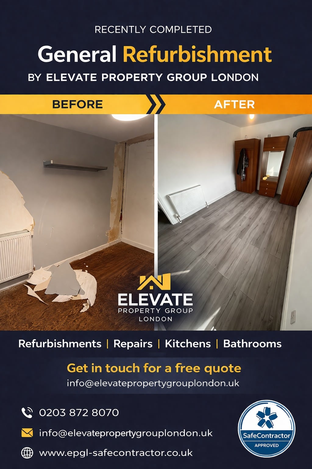 We are SafeContractor rennovators and property maintenance specialists serving all of London and surrounding areas. Get in touch for a free quote for any job small or large.