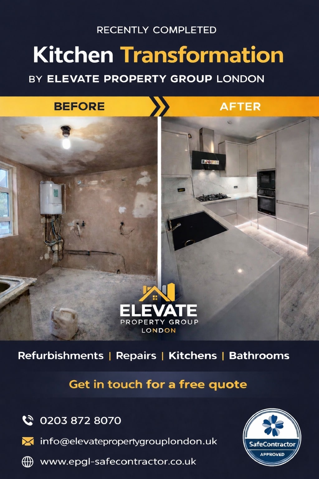 Homeowners trust Elevate Property Group London for professional refurbishment and property improvement projects. From kitchen and bathroom installations to full property upgrades, we deliver quality workmanship and reliable service.
